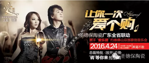 很顯然,樂迷們的福利日到了,特別是喜歡愛樂團的粉絲們,4月24日,愛樂團來到佛山圣德保陶瓷的總部展廳,將為你奉獻一場原創音樂盛會。屆時,將會有全廣東的業主齊聚在此,用很實惠的價格,買到很滿意的產品,還會有來自于全國各地的意向客戶渴望與圣德保陶瓷的區域負責人,做進一步的溝通洽談,渴望達成長久的合作伙伴關系。