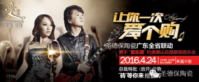 很顯然,樂迷們的福利日到了,特別是喜歡愛樂團的粉絲們,4月24日,愛樂團來到佛山圣德保陶瓷的總部展廳,將為你奉獻一場原創音樂盛會。屆時,將會有全廣東的業主齊聚在此,用很實惠的價格,買到很滿意的產品,還會有來自于全國各地的意向客戶渴望與圣德保陶瓷的區域負責人,做進一步的溝通洽談,渴望達成長久的合作伙伴關系。