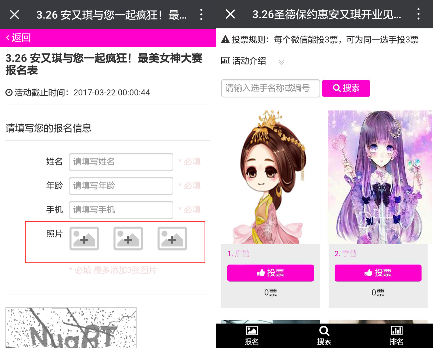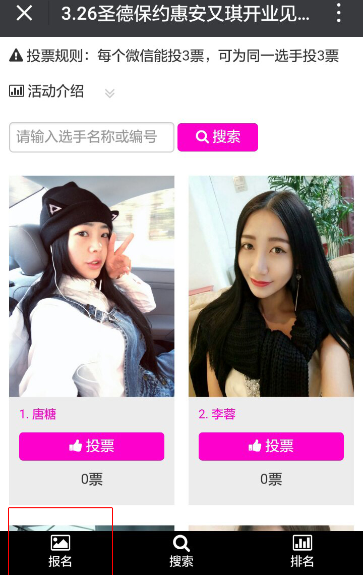 進入到這個界面后,點擊“照片+”這個框框,然后上傳你的3張美照,就可以完成報名了,然后拉上你的死黨每日為你投票吧,每日可以投3票哦!!!記得哦!!!