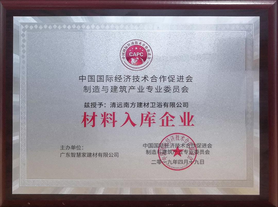 圣德保陶瓷憑借強大的品牌實力,以及在整裝、工程、設計師等渠道方面的創新經營與卓越成就,獲得中國國際經濟技術合作促進會(以下簡稱“中促會”)、制造與建筑產業專業委員會授予“材料入庫企業”認證稱號。
