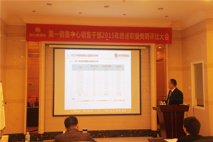 公司為了更好的激勵銷售干部,激勵員工奮發(fā)上進,形成爭當(dāng)先進、爭為公司發(fā)展做貢獻的良好氛圍,1月20日-21日,新中源建材有限公司廣東第一銷售中心召開2015年年終銷售干部述職評比大會,廣東圣德保營銷中心品牌副總經(jīng)理、區(qū)域經(jīng)理在會上對個人的述職報告進行了演講。